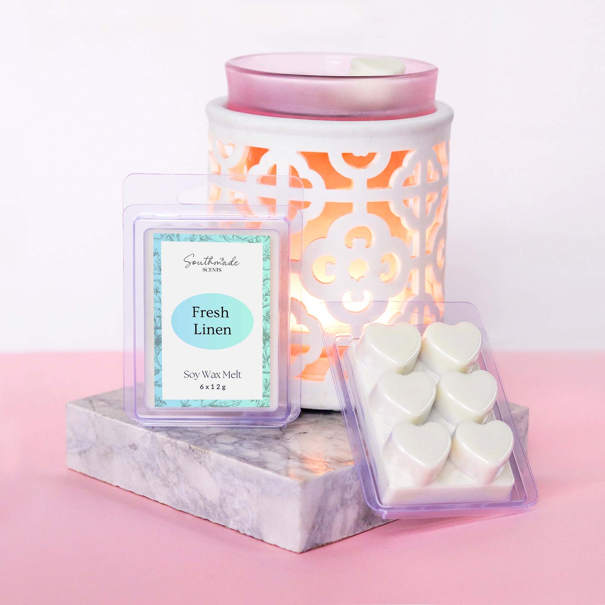 Southmade Scents wax melts deliver a beautiful fragrance to your wax melt warmer or burner. Each pack contains 6 wax melts with an average burn time of 6-10 hours per cube.